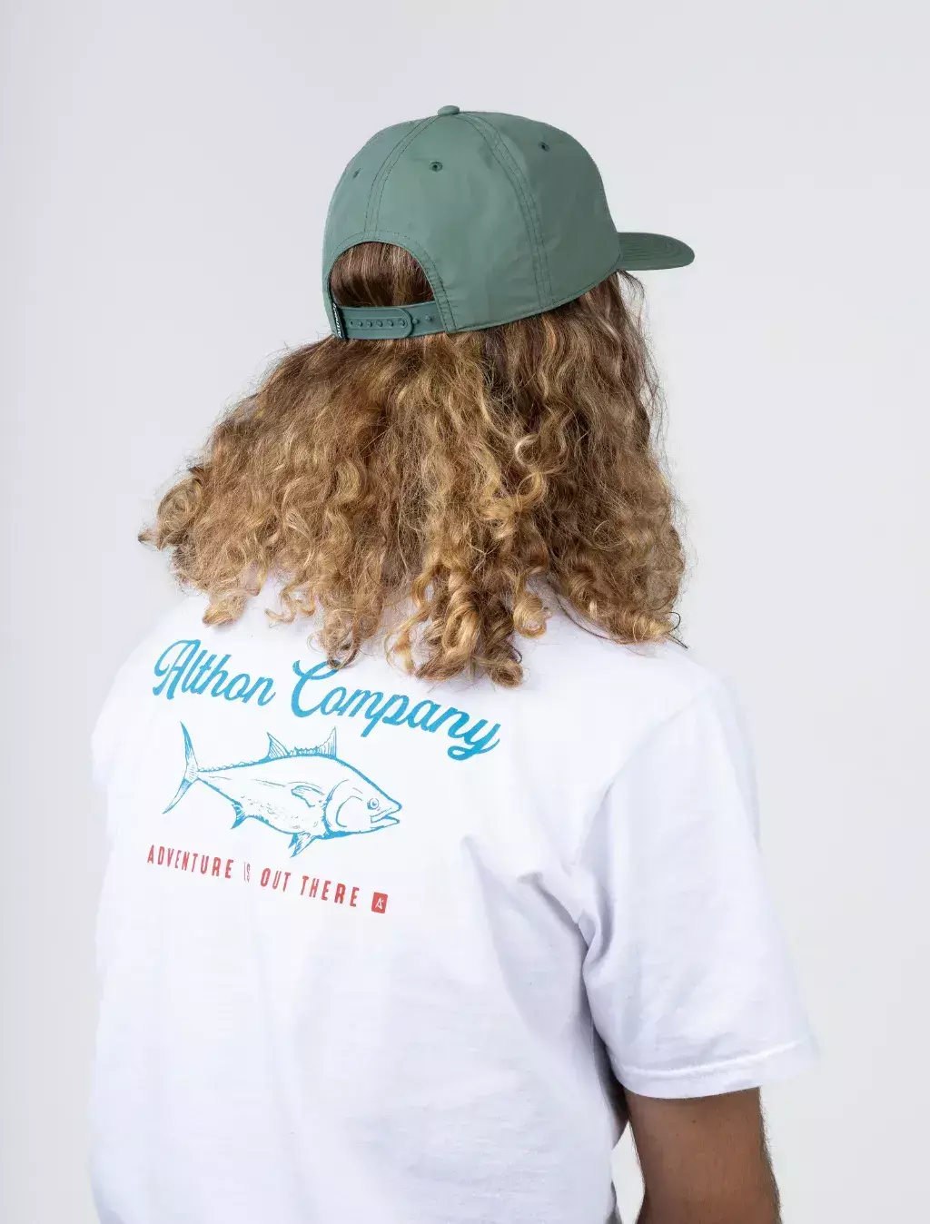 Cap 5 paneles con visera plana realizado en nylon. Snapback al tono con grifa Althon. Bordado plano “Althon co.” a 1 color. Vivo Althon en interior para terminacion de costuras y etiqueta en interior.