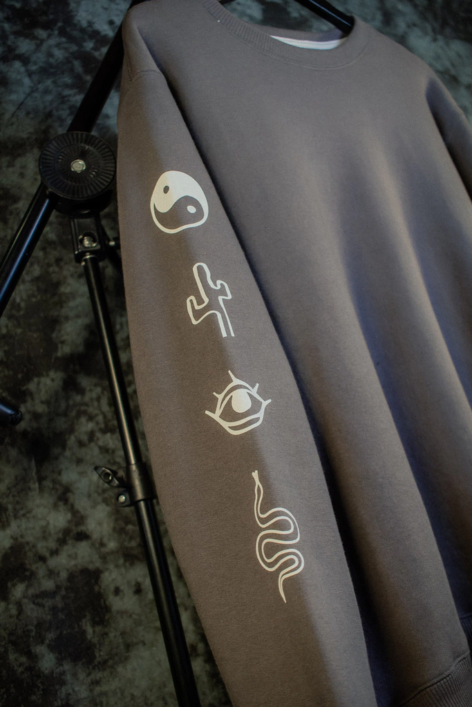 -Buzo crew oversize sin capucha de frisa invisible color gris topo.